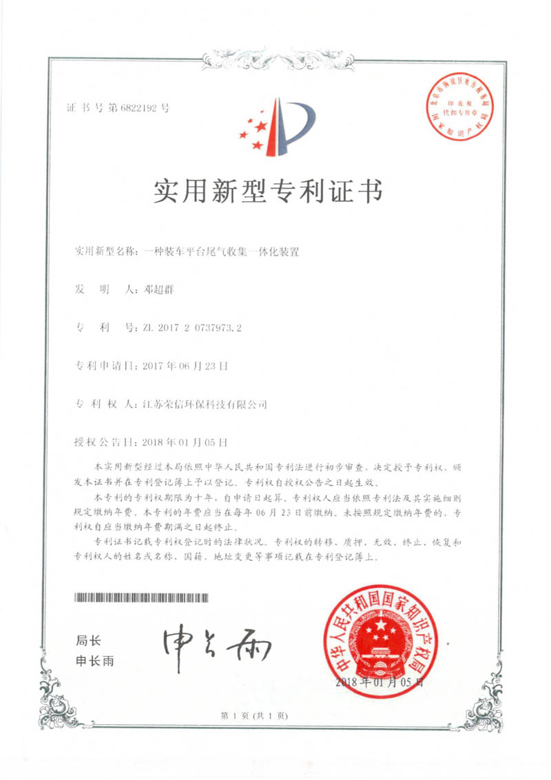 資質(zhì)榮譽 >> 實用新型專利證書